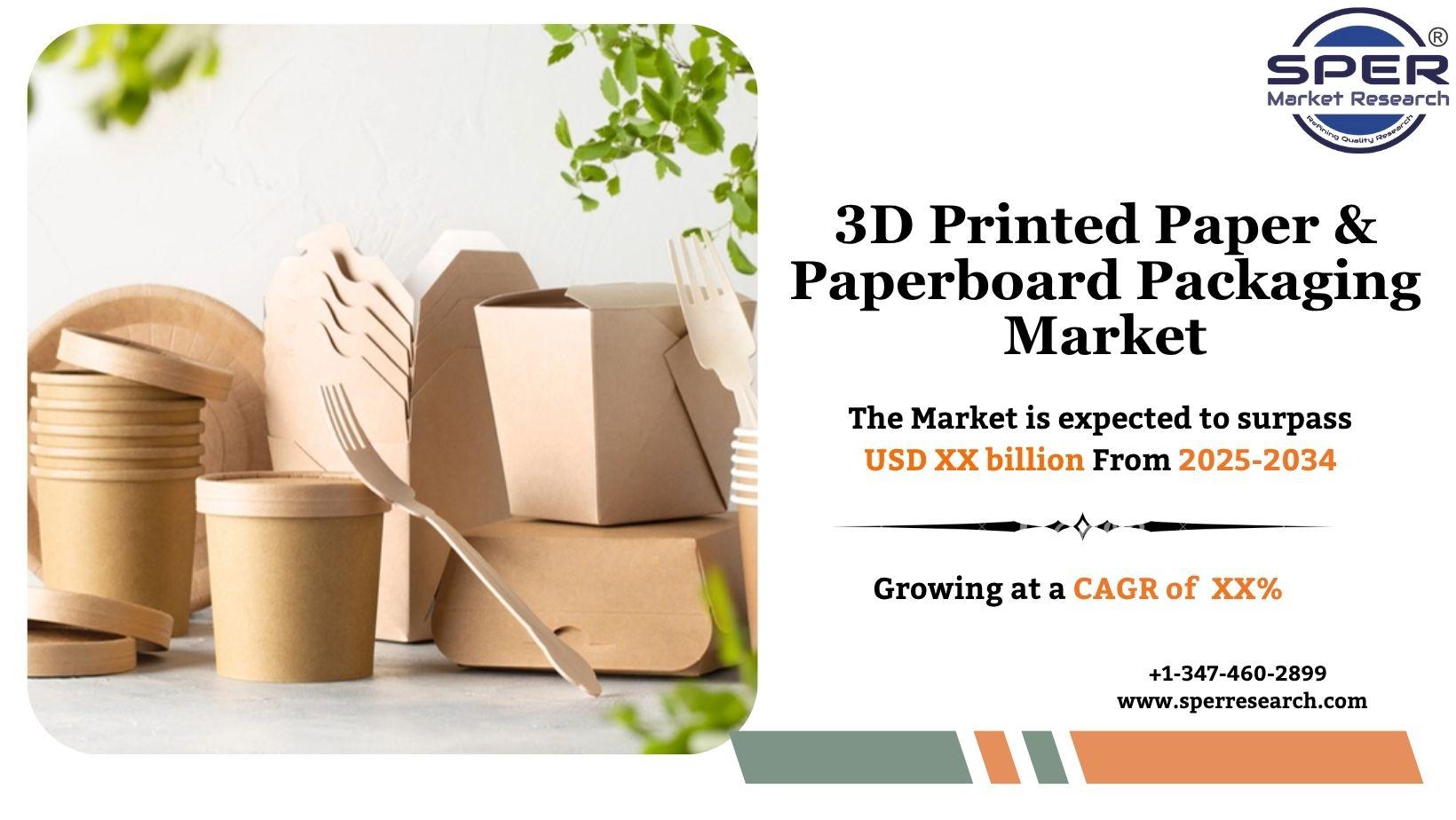 According to SPER Market Research, ‘Global 3D Printed Paper & Paperboard Packaging Market Size- By Product Type, By Printing Technology, By Application- Regional Outlook, Competitive Strategies and Segment Forecast to 2034’ states that the Global 3D Printed Paper & Paperboard Packaging Market is projected to be worth XX billion by 2034 and is anticipated to surge at a CAGR of XX%.